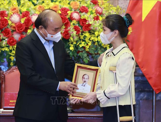 Chiều 19-11-2021, tại Phủ Chủ tịch, Chủ tịch nước Nguyễn Xuân Phúc gặp gỡ thân mật học sinh xuất sắc trong cuộc thi vẽ tranh và sáng tác văn học “Vì một Việt Nam tất thắng”, dành cho các bệnh nhi ung thư, bệnh hiểm nghèo, chất độc da cam, tàn tật, khuyết tật, tự kỷ và trẻ mồ côi.