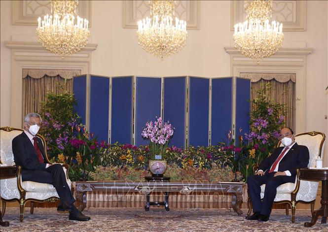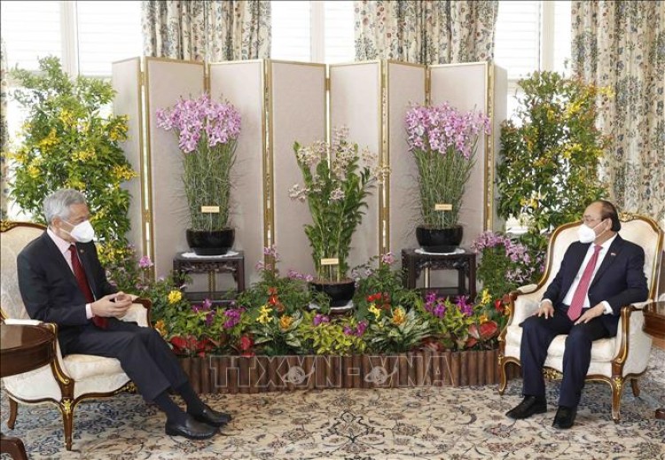 Chủ tịch nước Nguyễn Xuân Phúc gặp Thủ tướng Singapore Lý Hiển Long. Ảnh: Thống Nhất/TTXVN