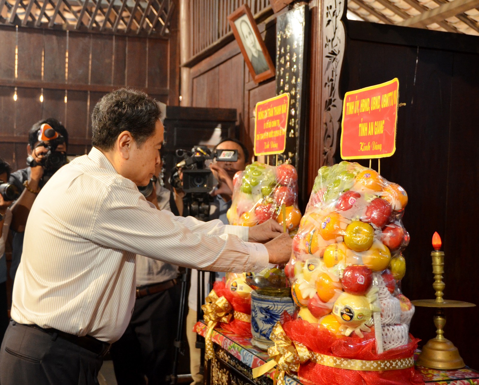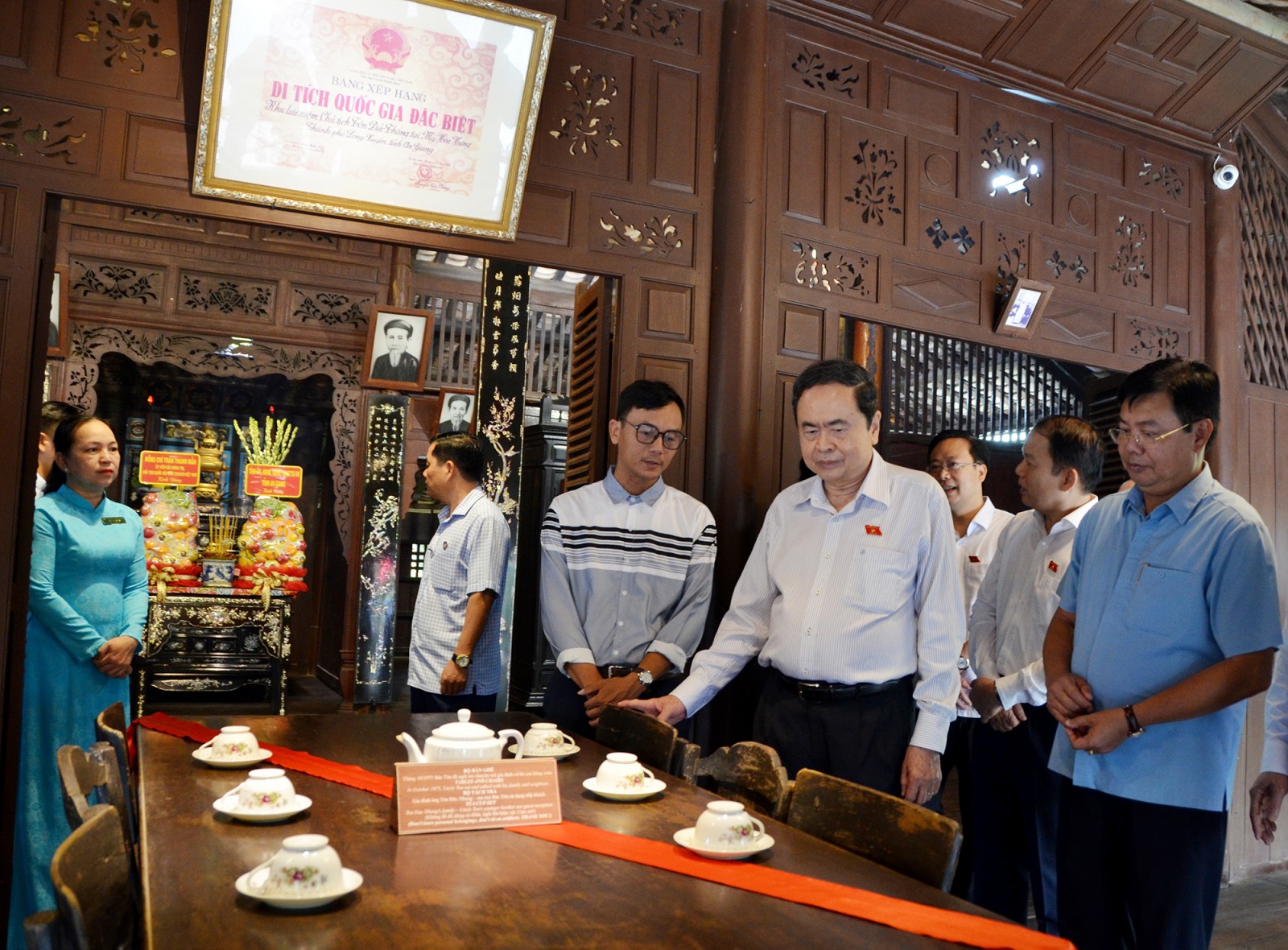 Chủ tịch Quốc hội Trần Thanh Mẫn cùng các thành viên đoàn công tác Trung ương và tỉnh An Giang đến thăm ngôi nhà lưu niệm thời niên thiếu của Chủ tịch Tôn Đức Thắng.