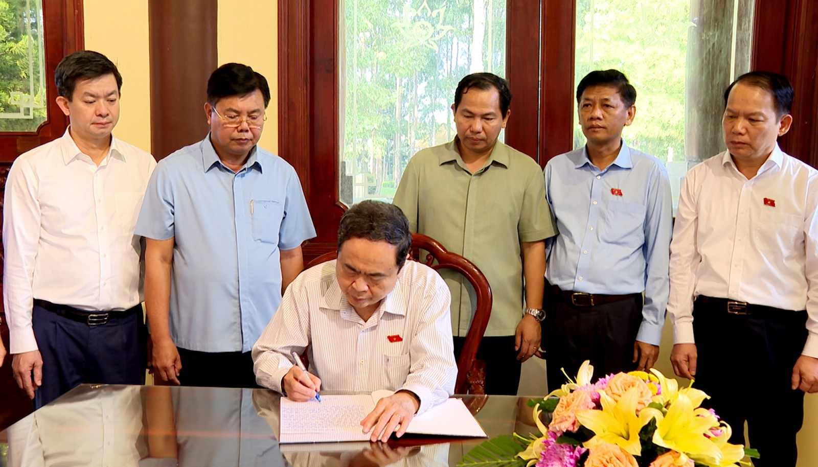 Viết vào sổ lưu niệm tại đền thờ Chủ tịch Tôn Đức Thắng, Chủ tịch Quốc hội Trần Thanh Mẫn bày tỏ: “Hướng tới kỷ niệm 80 năm ngày tổng tuyển cử đầu tiên bầu ra Quốc hội Việt Nam (6/1/1946 - 6/1/2026), hôm nay đoàn công tác về thăm khu lưu niệm thành kính, dâng hương tưởng nhớ công lao to lớn của Chủ tịch Tôn Đức Thắng - nhà lãnh đạo mẫu mực, người cộng sản kiên trung, tấm gương đạo đức cách mạng sáng ngời, người con ưu tú của tỉnh An Giang.