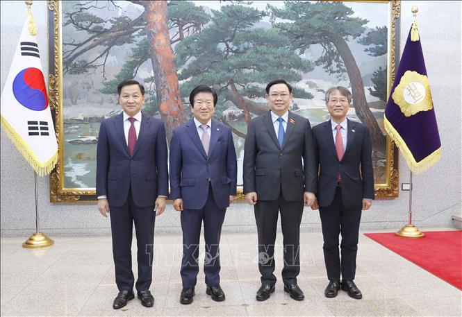 Chủ tịch Quốc hội Vương Đình Huệ gặp Chủ tịch Quốc hội Hàn Quốc Park Byeong Seok.