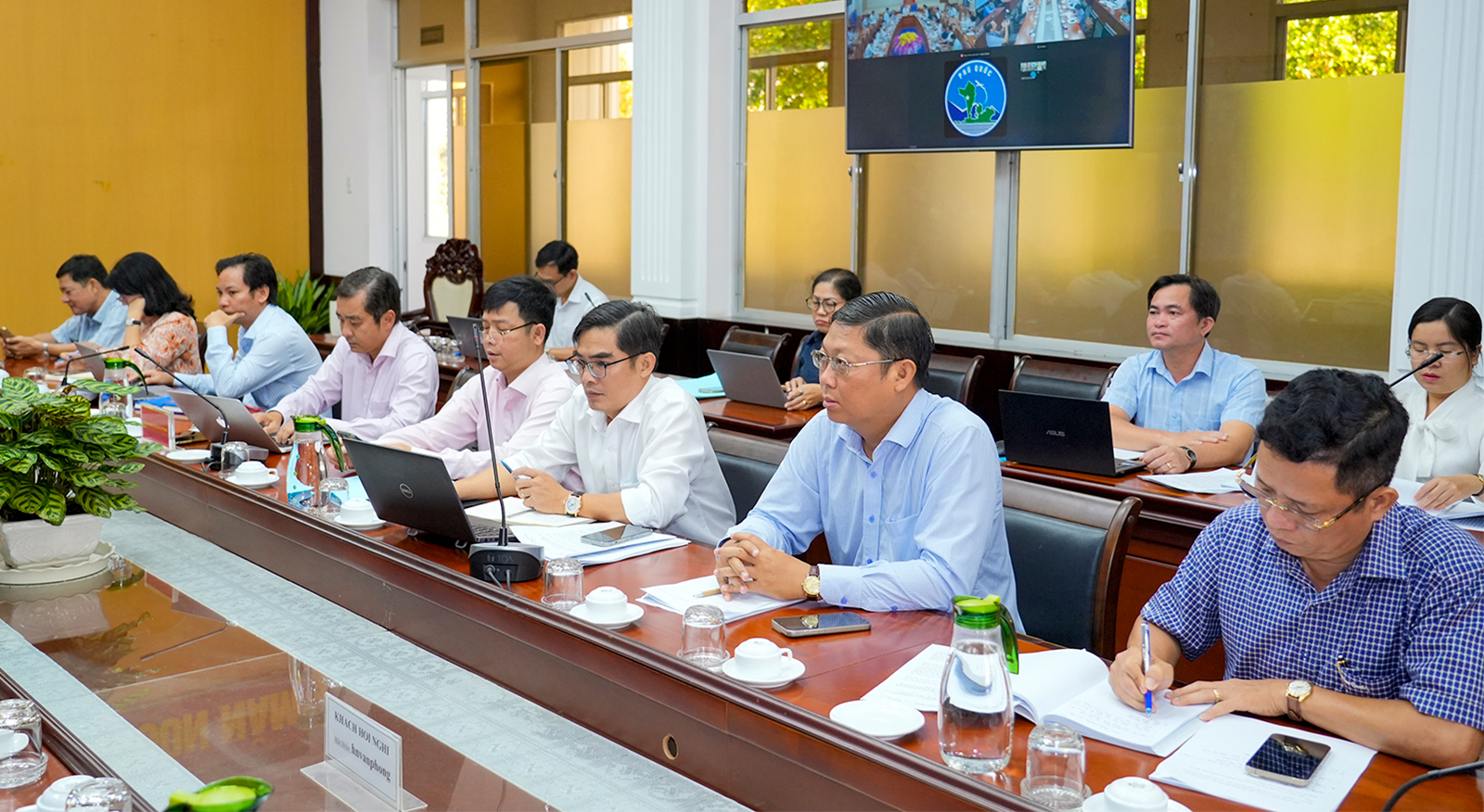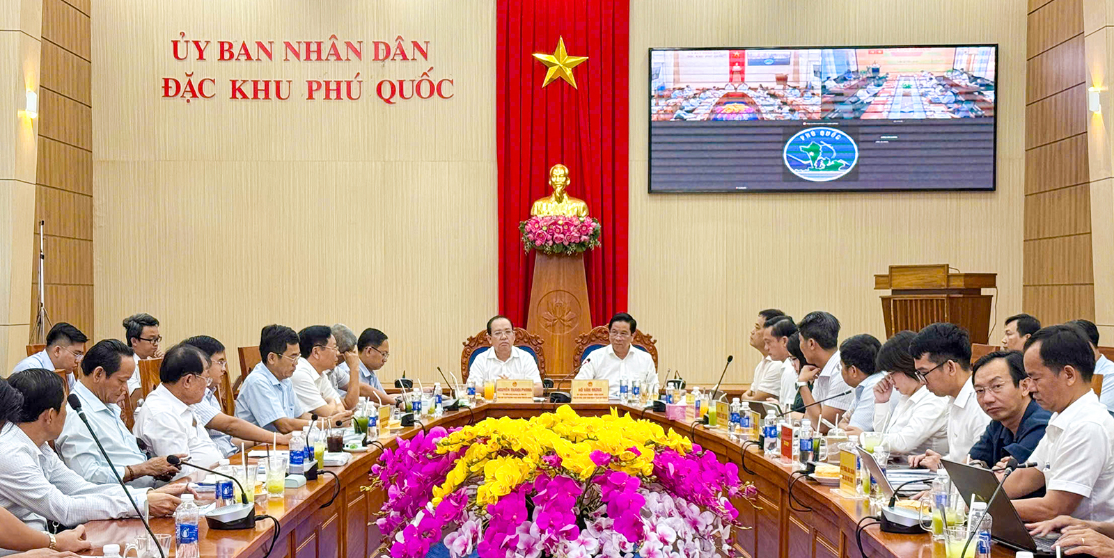 Quang cảnh hội nghị tại điểm cầu UBND đặc khu Phú Quốc (tỉnh An Giang). Ảnh: HOÀNG DUNG