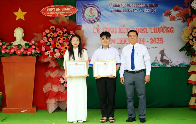 Trường Trung học cơ sở và Trung học phổ thông Vĩnh Lộc khen thưởng học sinh có thành tích xuất sắc năm học 2024 - 2025. Ảnh: THÚY HẰNG