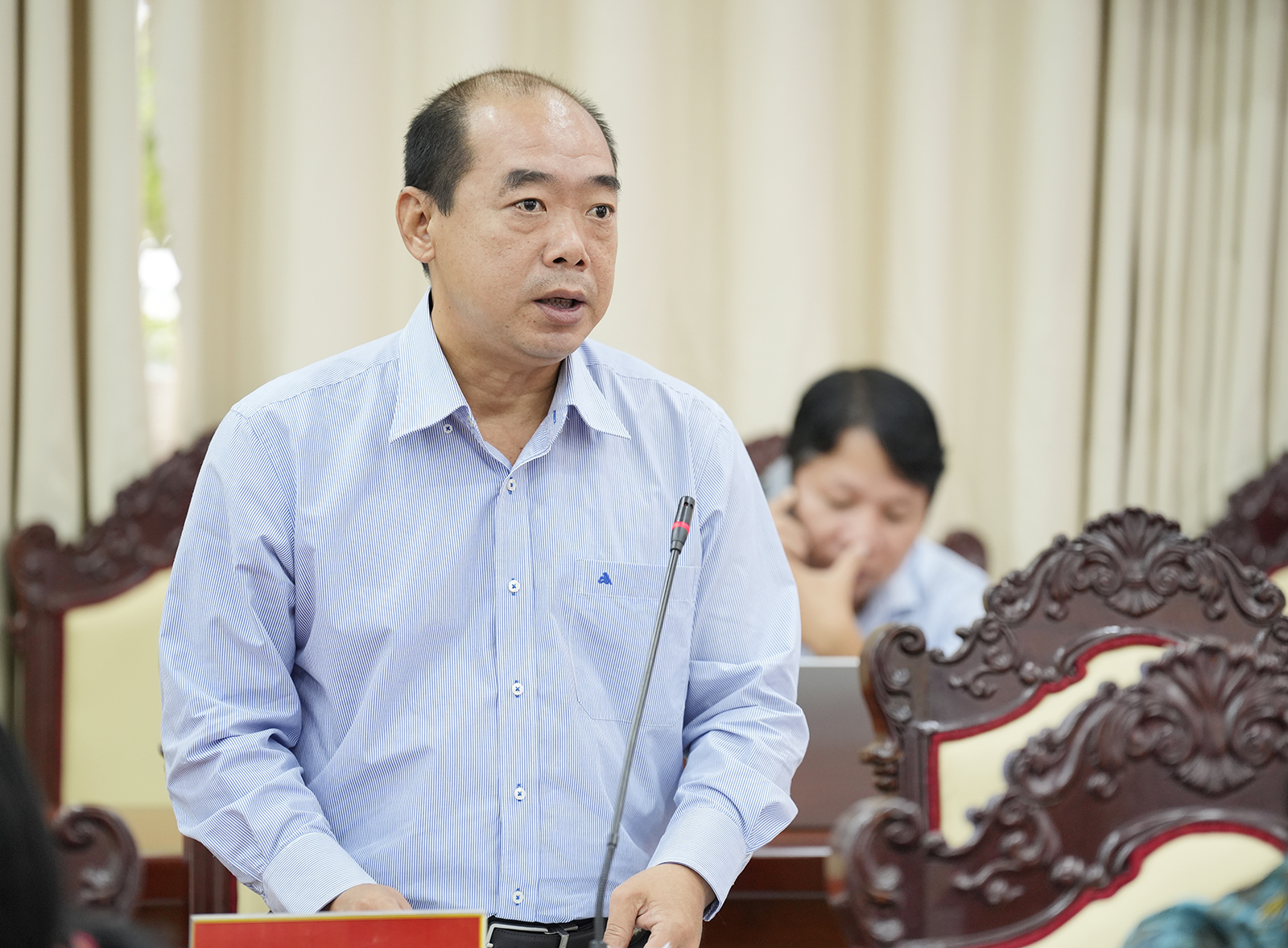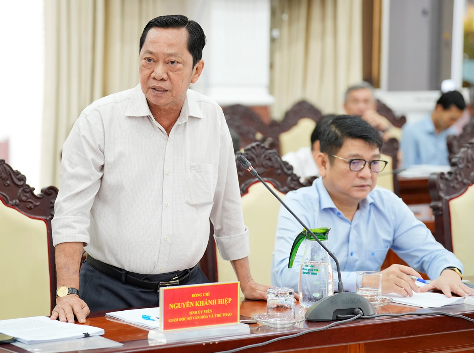 Giám đốc Sở Văn hóa và Thể thao tỉnh An Giang Nguyễn Khánh Hiệp phát biểu tại cuộc họp.