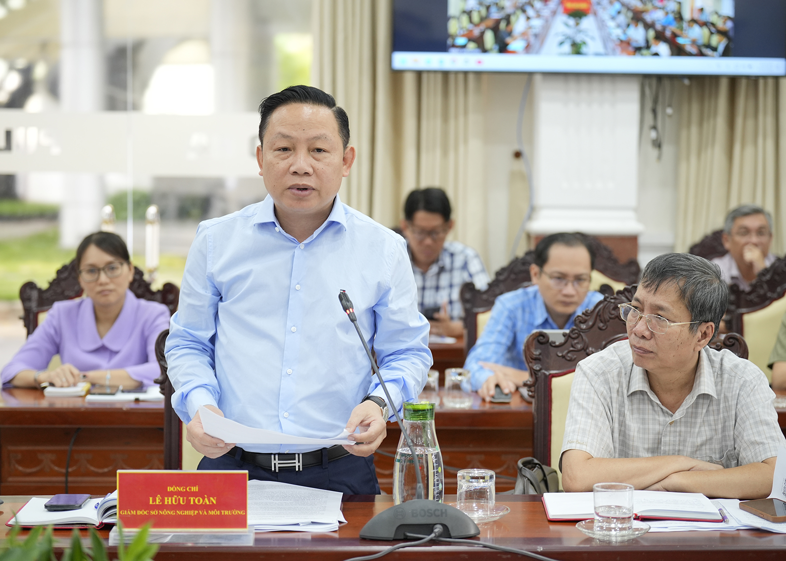 Giám đốc Sở Nông nghiệp và Môi trường tỉnh An Giang Lê Hữu Toàn phát biểu tại cuộc họp.
