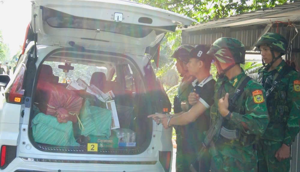 Lực lượng Bộ đội Biên phòng Tây Ninh bắt quả tang ô tô 7 chỗ vận chuyển trái phép 3.000 bao thuốc lá ngoại nhập lậu khi đang lưu thông qua xã Hưng Điền