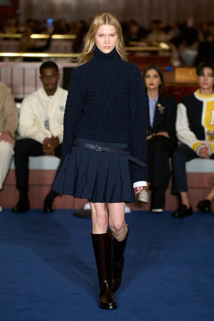 Trên sàn diễn mùa thu đông 2025, thương hiệu Tommy Hilfiger đã trình làng những bộ trang phục theo phong cách học đường với tông màu xanh navy làm chủ đạo. ẢNH: @TOMMYHILFIGER