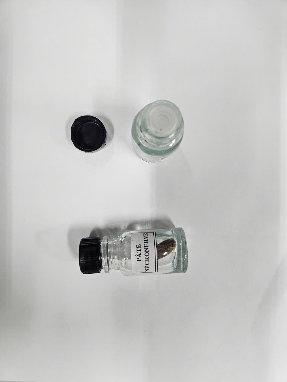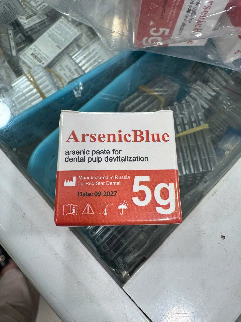 Tại đây, lực lượng chức năng phát hiện cơ sở đang bày bán sản phẩm "Arsenic Blue 5g" và nhiều lọ sản phẩm "Pâte Nécronerve". Hóa chất này thường gọi là chất diệt tủy dùng trong nha khoa nhưng không xuất trình được hóa đơn, chứng từ chứng minh nguồn gốc hợp pháp.