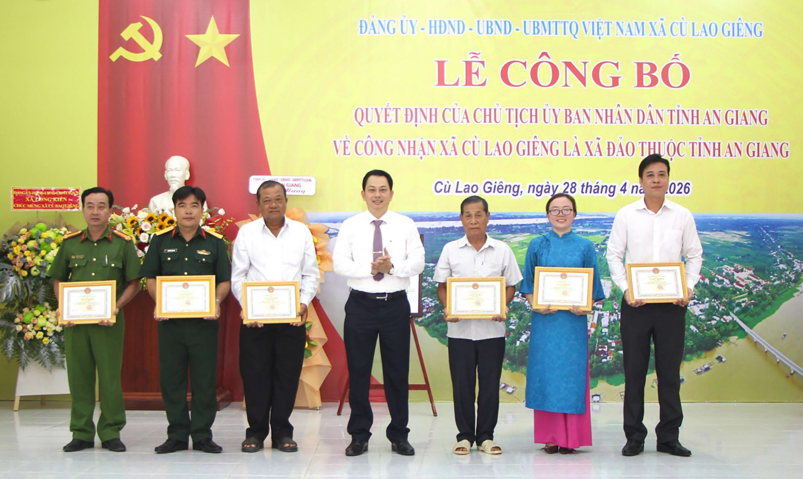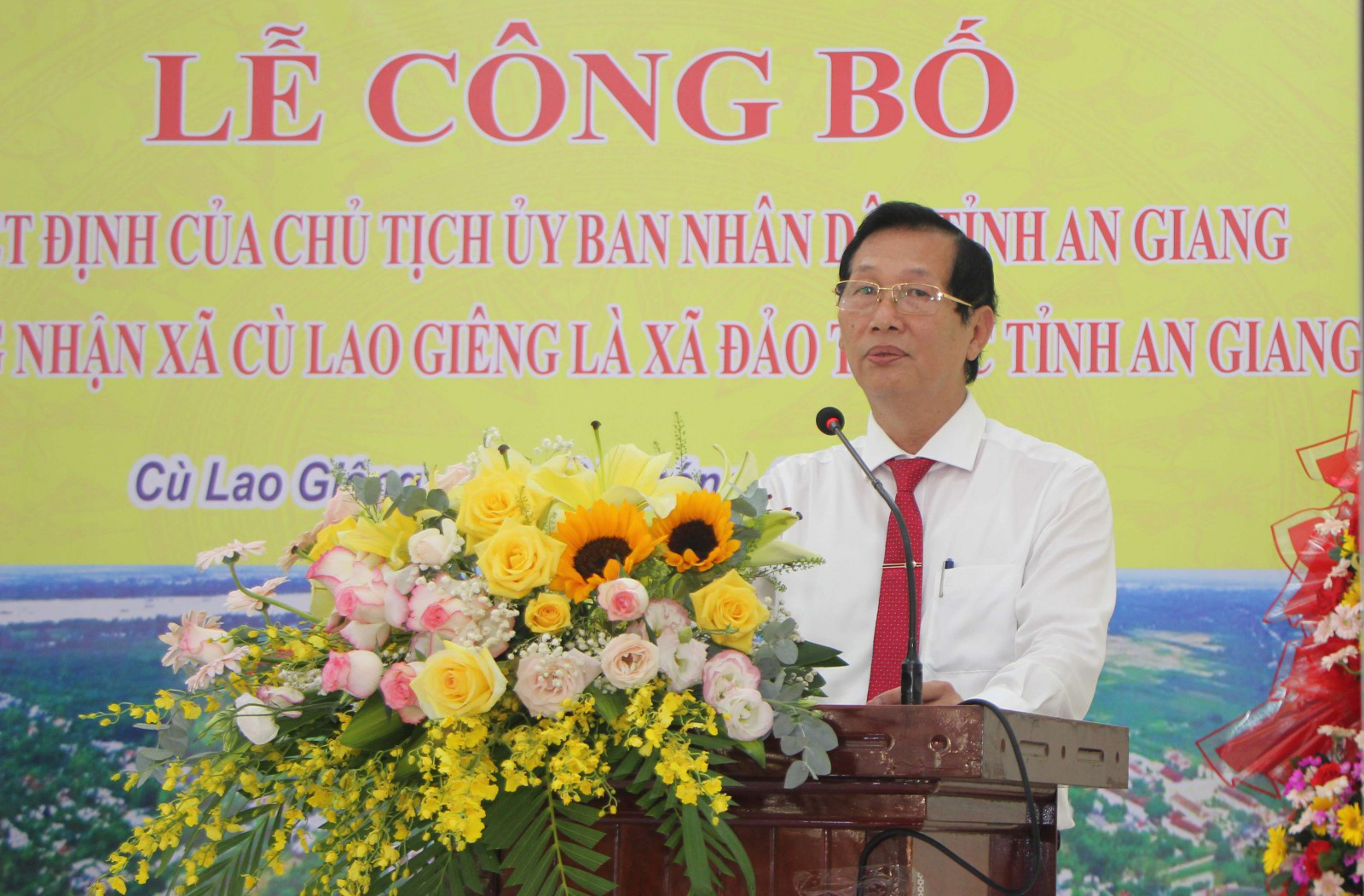 Phát biểu tại buổi lễ, Phó Chủ tịch UBND tỉnh An Giang Lê Văn Phước chúc mừng Đảng bộ, chính quyền và Nhân dân xã Cù Lao Giêng đã vinh dự được công nhận là xã đảo. Đây là sự kiện có ý nghĩa quan trọng, đánh dấu bước phát triển mới của địa phương, đồng thời khẳng định sự quan tâm của Đảng, Nhà nước đối với vùng có vị trí đặc thù về kinh tế - xã hội, quốc phòng, an ninh.