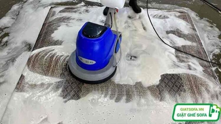 - Đánh tan vết bẩn: Sử dụng máy chà cầm tay hoặc bàn chải mềm chuyên dụng để làm sạch các vết bẩn cứng đầu.