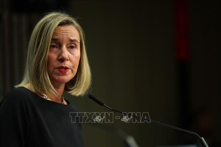 Bà Federica Mogherini, lúc đang là Đại diện cấp cao của EU phụ trách chính sách an ninh và đối ngoại, phát biểu trong cuộc họp báo tại Brussels, Bỉ ngày 11/11/2019. Ảnh (tư liệu): THX/TTXVN