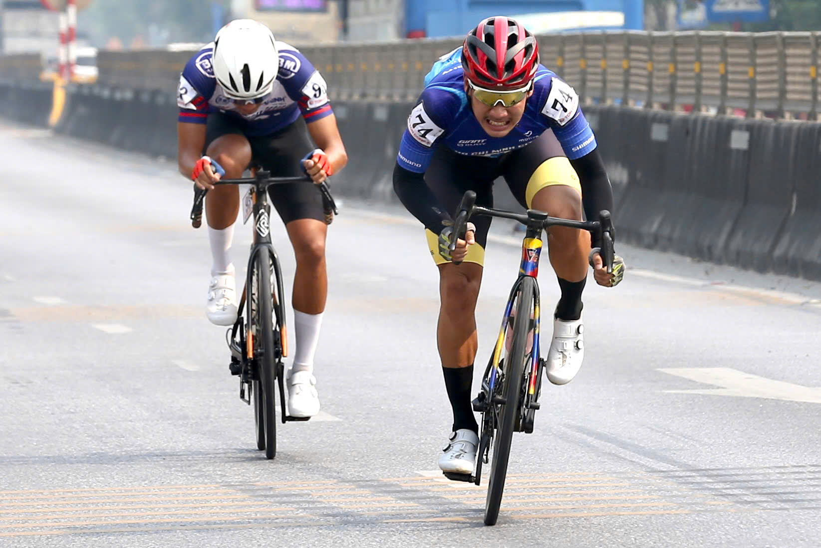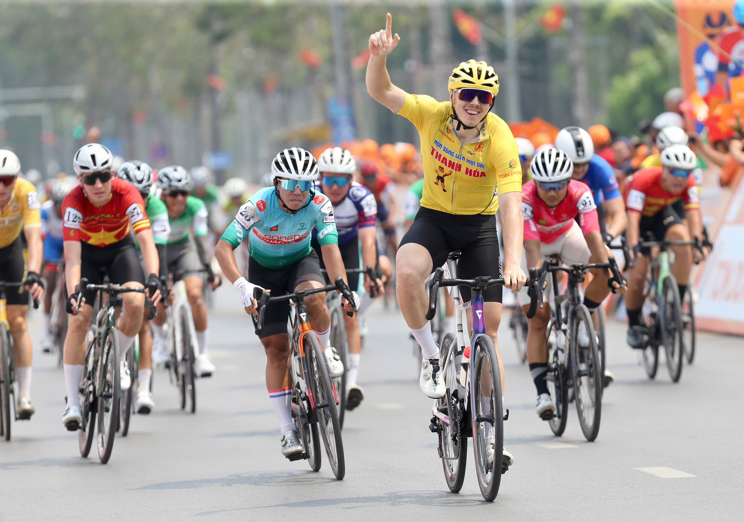 Tay đua Marchuk Dzianis thể hiện phong độ cao, giành chiến thắng chặng 5 tại Nghệ An, bảo vệ thành công áo vàng lẫn áo xanh Cúp xe đạp truyền hình TP.HCM. ẢNH: KHẢ HÒA