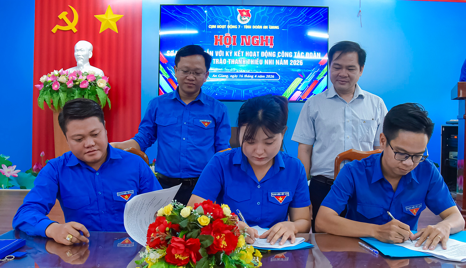 12 đoàn xã, đặc khu thuộc Cụm 7 ký kết hoạt động công tác Đoàn và phong trào thanh thiếu nhi năm 2026 với các nội dung như tổ chức “Hành trình đến địa chỉ đỏ”, dâng hương, tham quan tại Khu lưu niệm Chủ tịch Tôn Đức Thắng tại xã Mỹ Hòa Hưng vào tháng 4; tổ chức “Hành trình tuổi trẻ Cụm 7 An Giang với biển đảo quê hương”, dâng hương, tham quan tại Quảng trường Hồ Chí Minh tại đặc khu Phú Quốc vào tháng 6; tổ chức “Hoạt động giao lưu team building bãi biển gắn với hội thao cụm 7” vào tháng 9 tại phường Hà Tiên, Tô Châu; tổ chức hoạt động “Vì đàn em thân yêu” vào tháng 12 tại xã Hòa Điền.