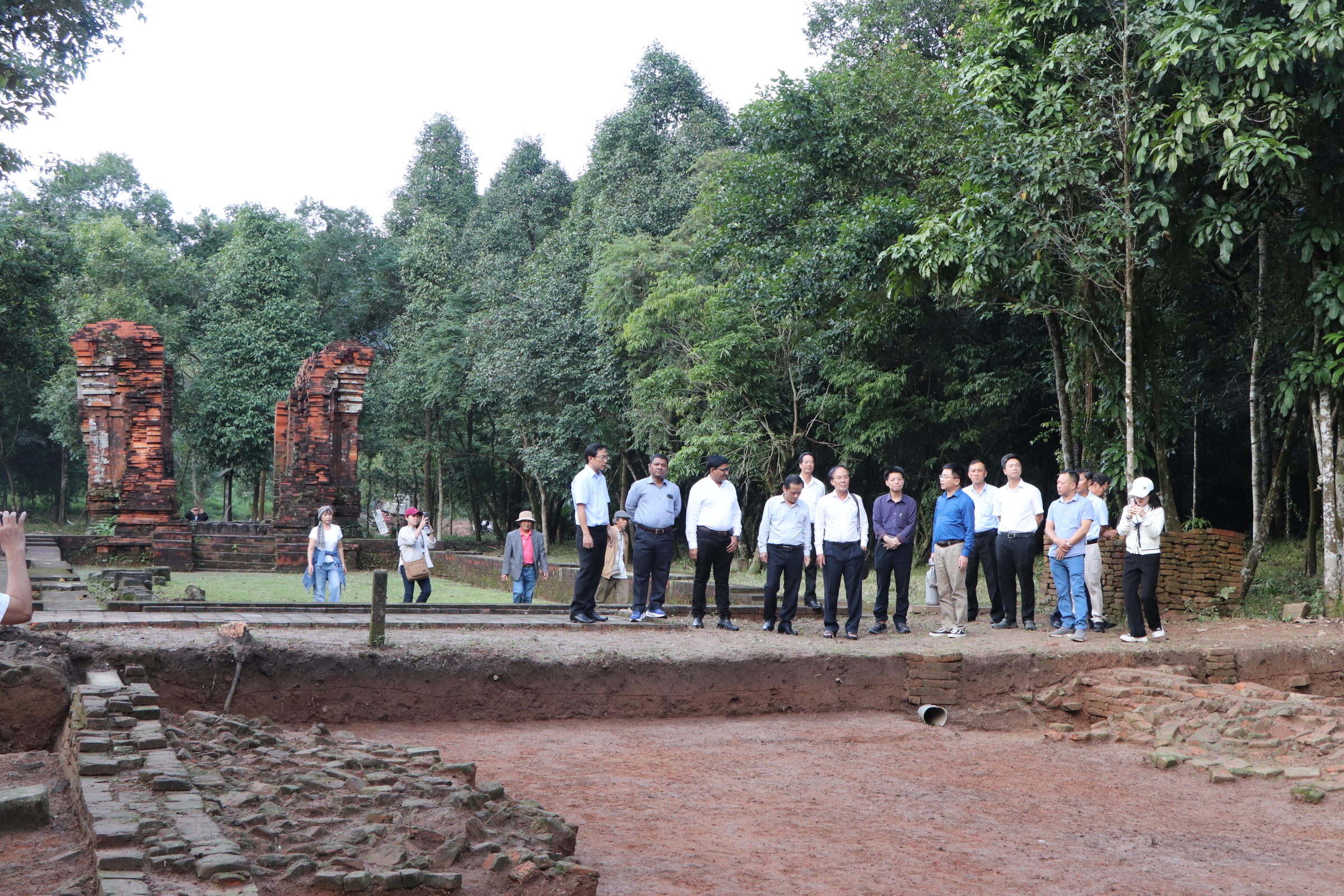 Du khách, chuyên gia tham quan tại khu đền tháp Mỹ Sơn - Ảnh: B.D.