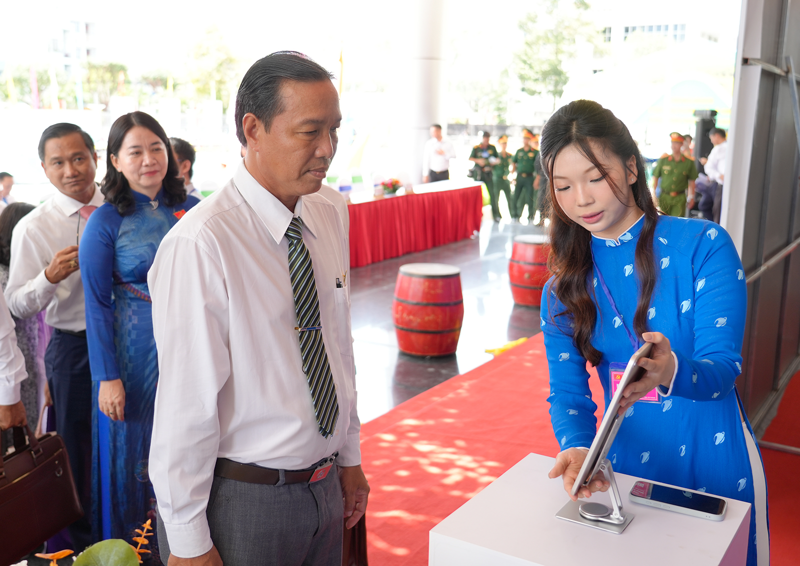 Đại hội đại biểu Đảng bộ tỉnh An Giang lần thứ I áp dụng công nghệ nhận diện khuôn mặt để điểm danh đại biểu dự đại hội.