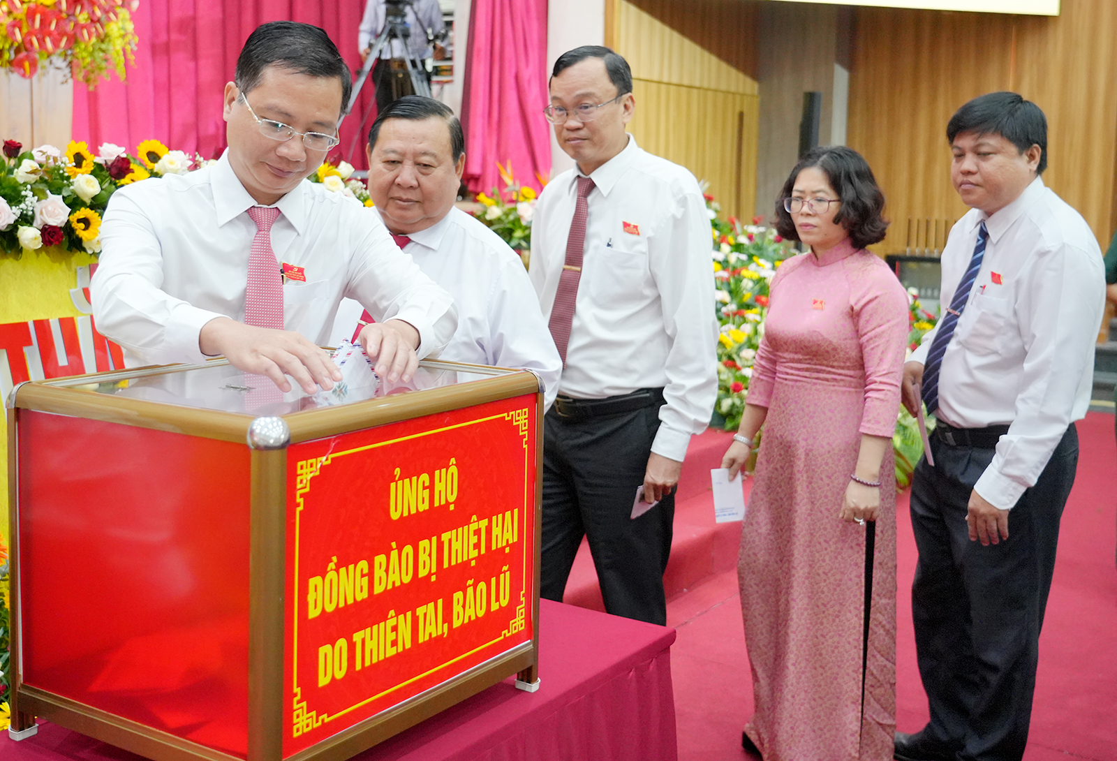 Sau phần trù bị, đồng chí Trần Thị Thanh Hương, Phó Bí thư Tỉnh ủy, Trưởng đoàn Đại biểu Quốc hội khóa XV, Chủ tịch Ủy ban Mặt trận Tổ quốc Việt Nam tỉnh An Giang phát động ủng hộ đồng bào các tỉnh bị thiệt hại bởi thiên tai, bão lũ, nhất là trong cơn bão số 10.