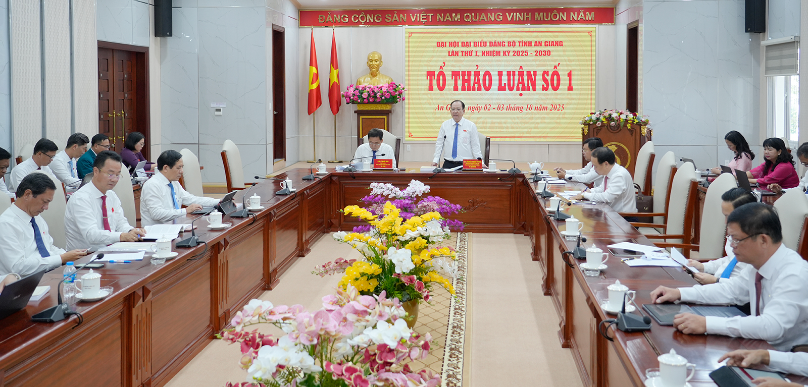 Các đại biểu tham gia thảo luận tại Tổ Thảo luận số 1, Đại hội đại biểu Đảng bộ tỉnh An Giang lần thứ I, nhiệm kỳ 2025 - 2030.