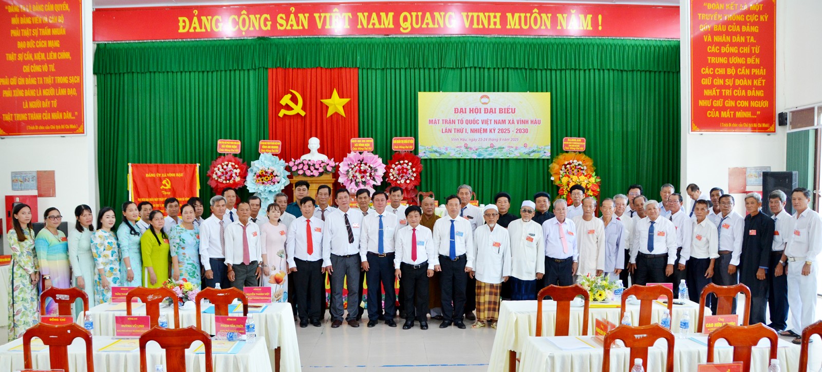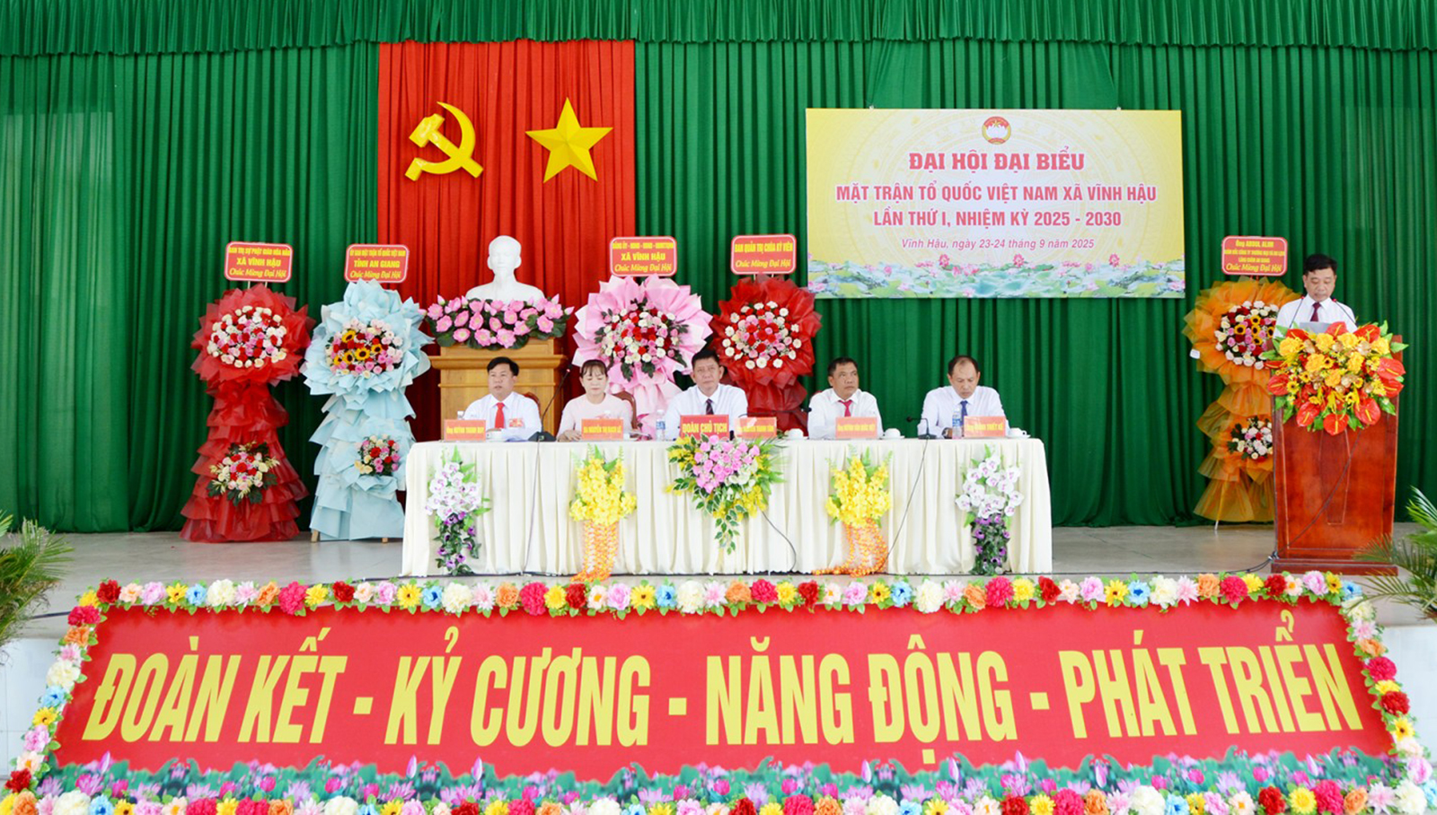 Ủy ban MTTQ Việt Nam xã Vĩnh Hậu tổ chức Đại hội đại biểu lần thứ I, nhiệm kỳ 2025 - 2030. Phó Chủ tịch Ủy ban MTTQ Việt Nam tỉnh, Bí thư Tỉnh đoàn An Giang Phan Duy Bằng; Bí thư Đảng ủy, Chủ tịch HĐND xã Vĩnh Hậu Nguyễn Ngọc Huynh, cùng 150 đại biểu tham dự.