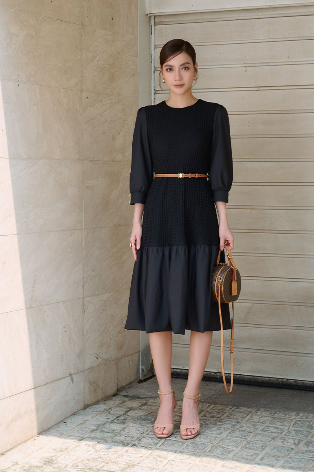 Khi phối cùng túi da tiệp màu đai lưng, nàng sở hữu diện mạo quý phái nhưng vẫn trẻ trung, đặc biệt phù hợp cho môi trường công sở hoặc sự kiện trang nhã.