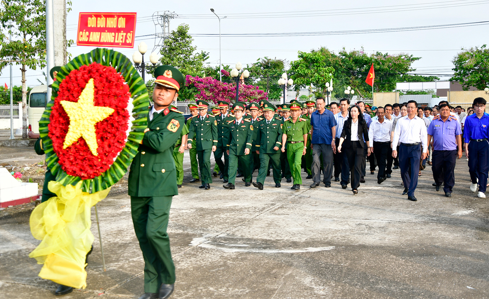 Tại Nghĩa trang Liệt sĩ xã Đông Thái - nơi yên nghỉ của gần 1.900 Anh hùng, liệt sĩ, các đại biểu đã thành kính đặt vòng hoa, dâng hương, mặc niệm tưởng nhớ công lao to lớn của những người đã anh dũng hy sinh vì sự nghiệp đấu tranh giải phóng dân tộc, thống nhất đất nước.