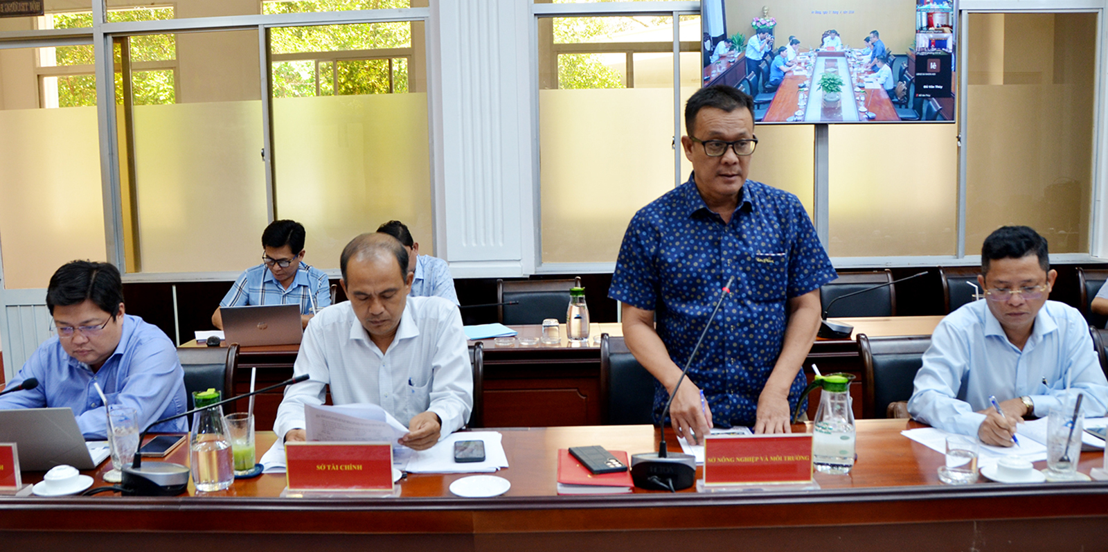 Đại diện các sở, ngành phát biểu tại cuộc họp.