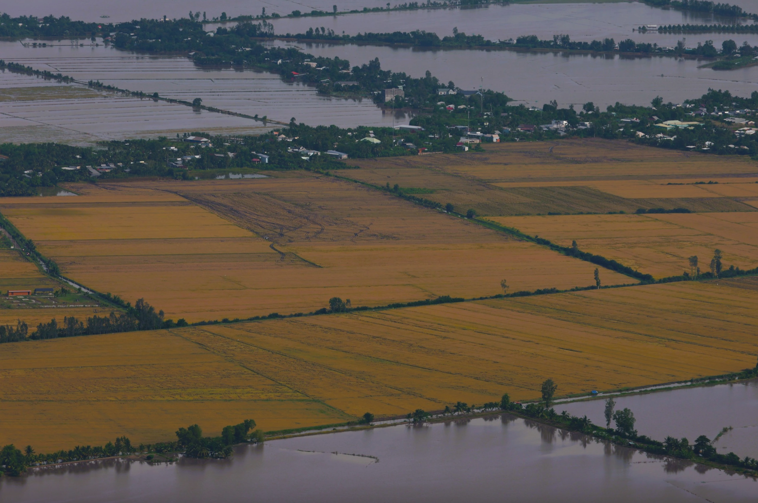 Những cánh đồng lúa thu đông sớm ở ĐBSCL đang chuẩn bị thu hoạch. Mực nước lũ cuối mùa cao có thể ảnh hưởng đến việc xuống giống vụ đông xuân sắp tới. ẢNH: MAI THANH HẢI