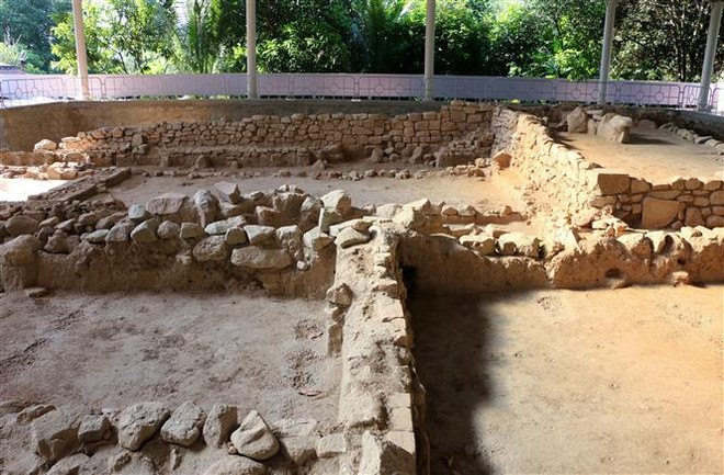 Hố khai quật tại khu di tích Óc Eo-Ba Thê, huyện Thoại Sơn, tỉnh An Giang.