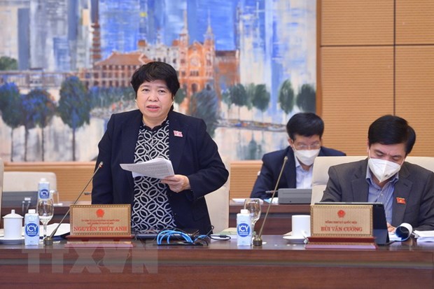 Chủ nhiệm Ủy ban Xã hội của Quốc hội Nguyễn Thuý Anh trình bày báo cáo thẩm tra. (Ảnh: Doãn Tấn/TTXVN)
