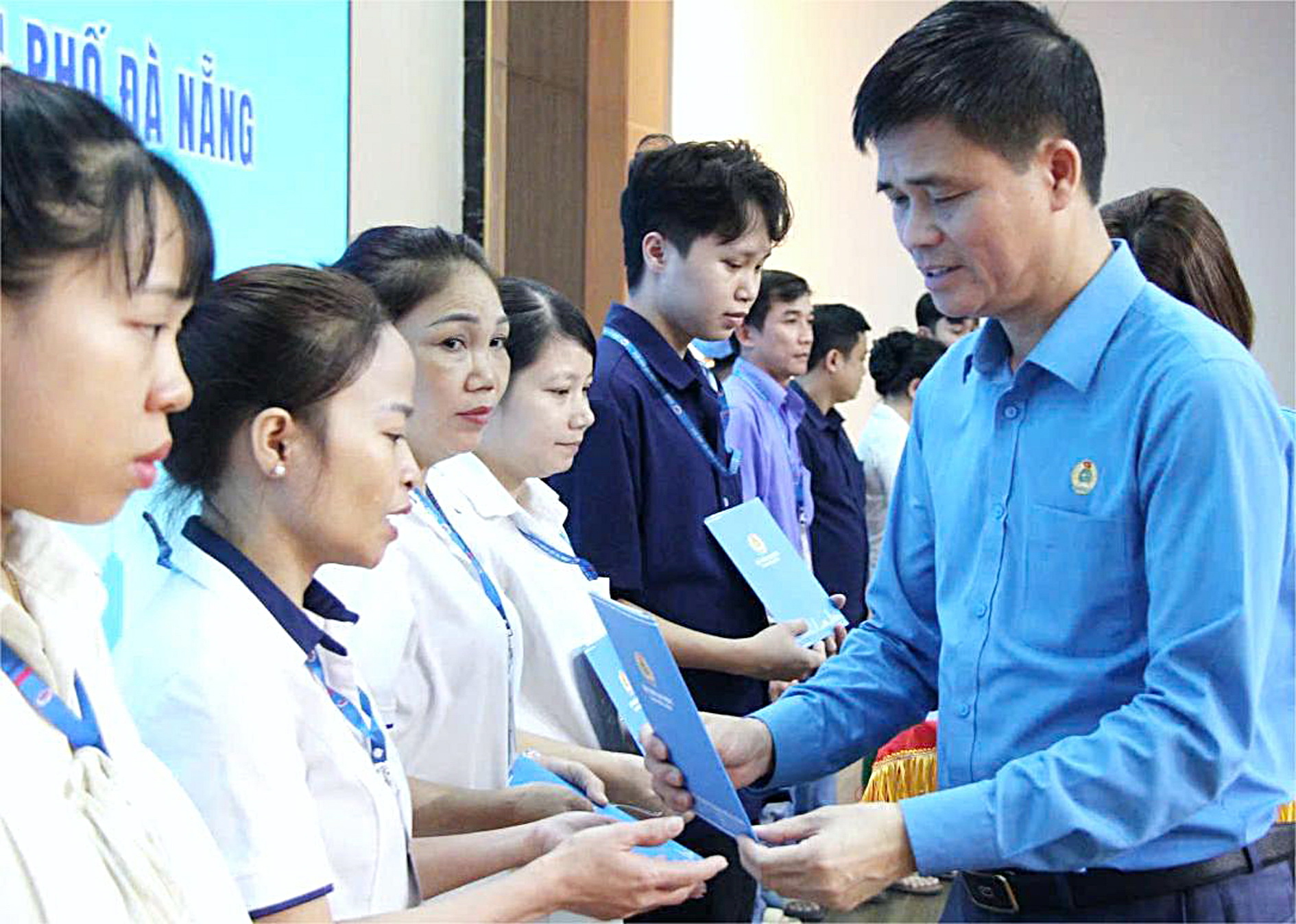 Tại Đà Nẵng, buổi gặp mặt ở Công ty cổ phần dệt may 29-3 thật ấm áp. Từng chiếc phong bì 2 triệu đồng đã được trao tận tay người lao động. Nhiều công nhân đưa tay nhận quà mà nước mắt rưng rưng.