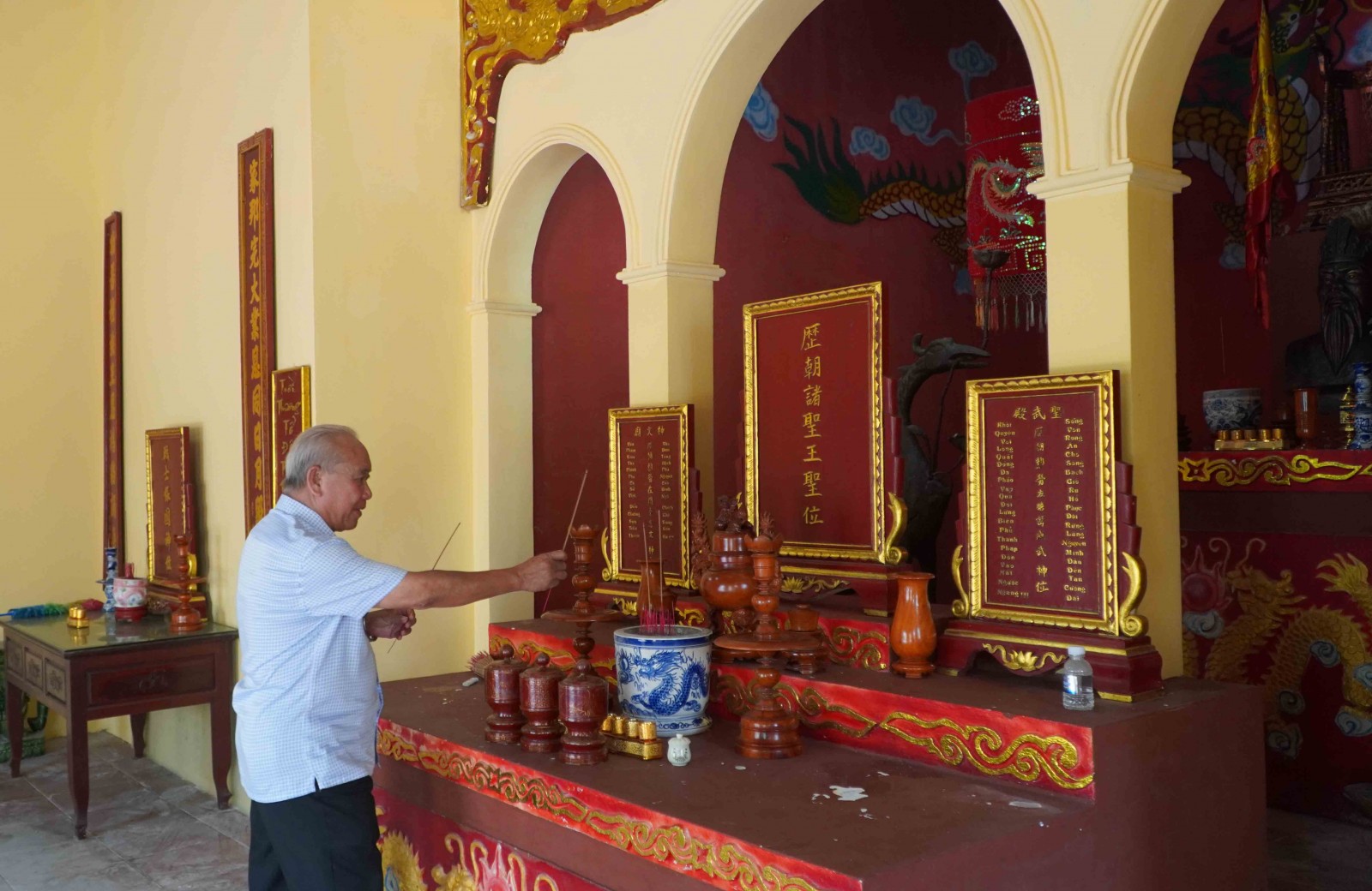 Ông Nguyễn Duy Phú hằng ngày chăm lo hương khói tại đền.