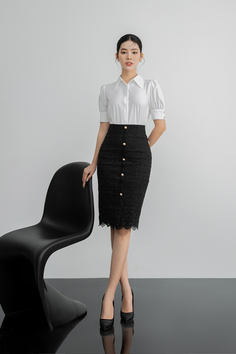 Chân váy bút chì phối ren thể hiện sự nữ tính
