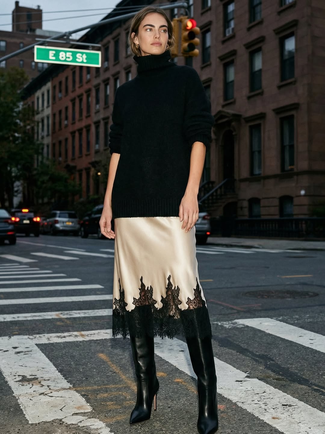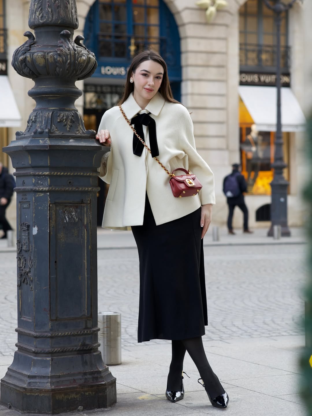 Phối áo khoác và váy dài là một bài toán có rất nhiều đáp án. Không cố định bởi bất kỳ dáng áo đặc trưng nào - từ áo khoác tweed dáng ngắn, cardigan, áo dạ lông cừu, áo da đến áo len oversized đều có thể phối cùng váy dáng dài làm từ lụa, ren, nhung, cotton...