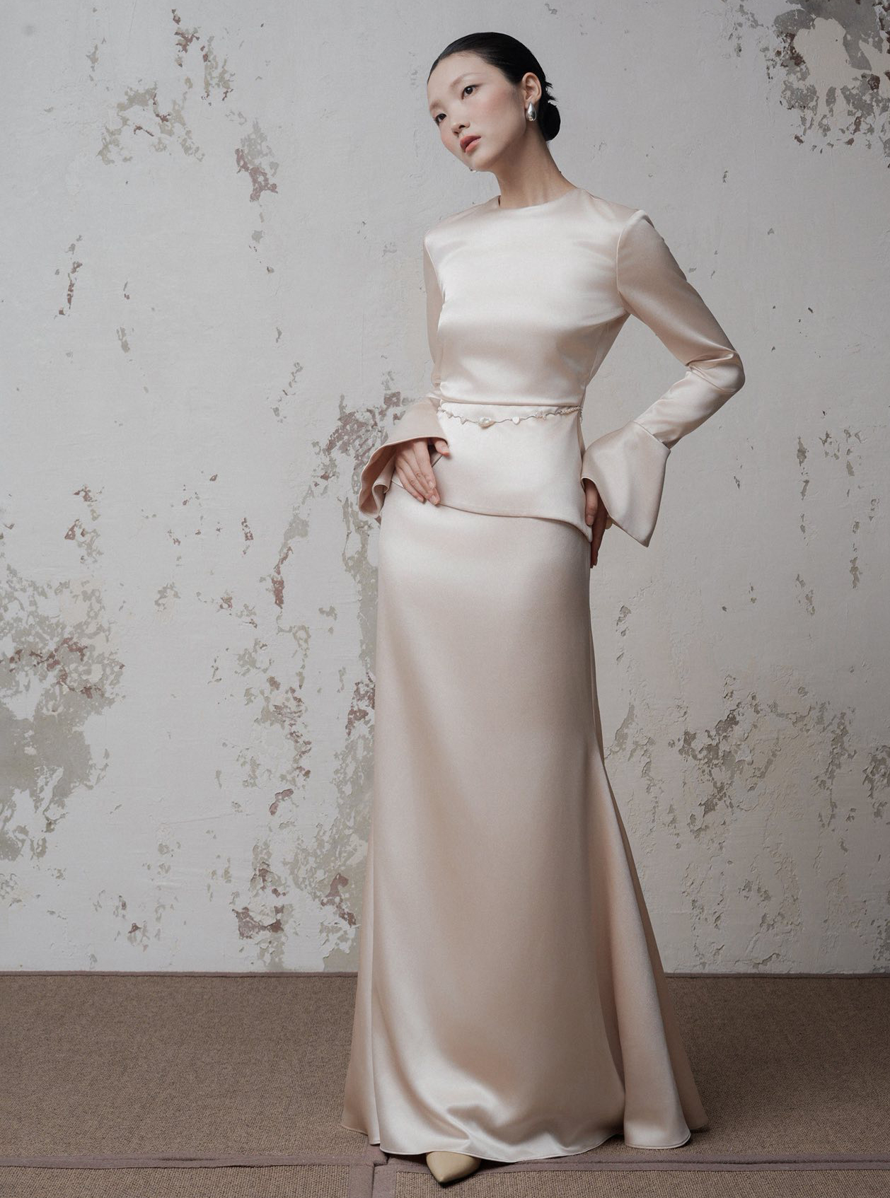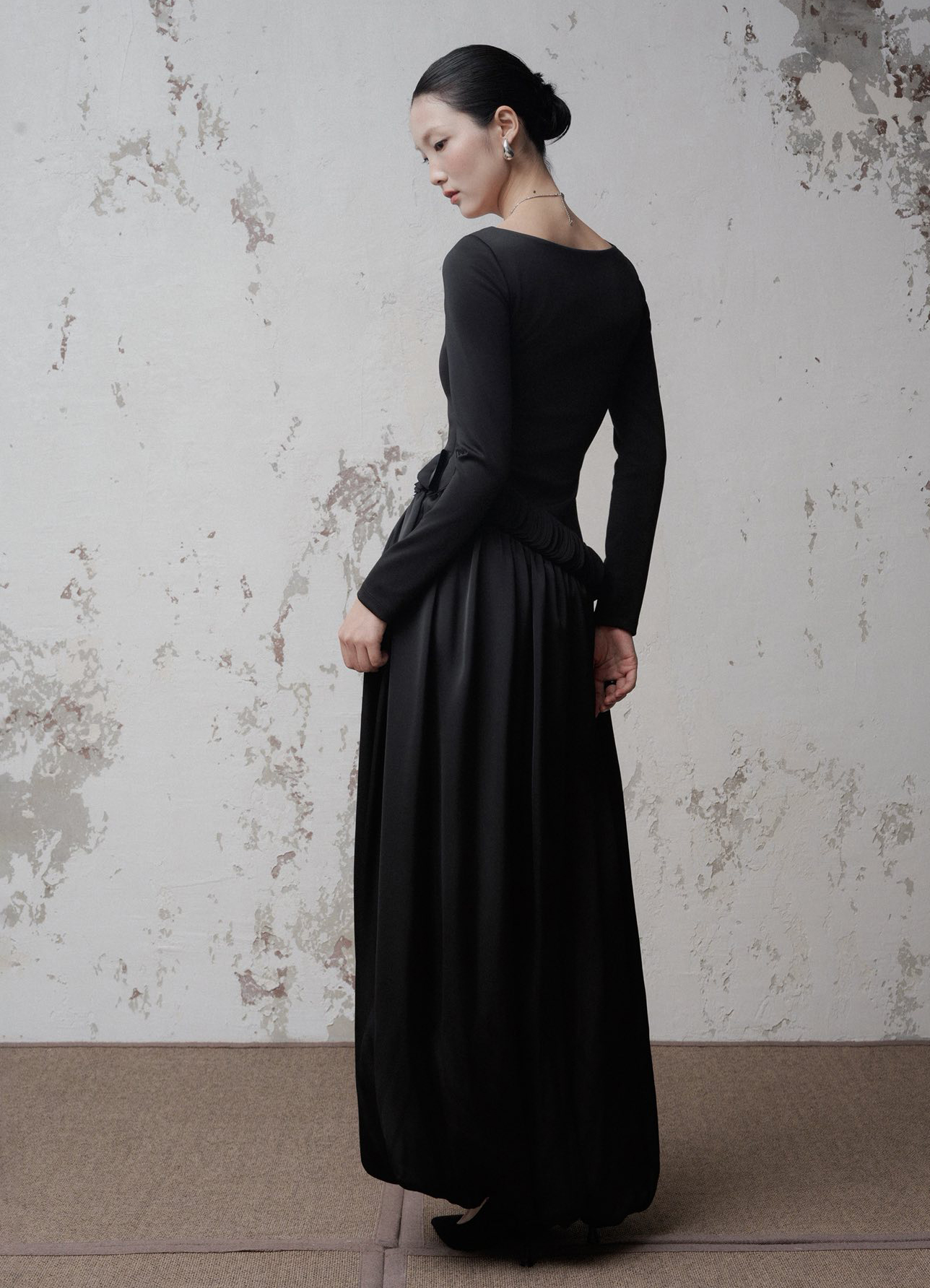 Váy dáng dài cổ điển đơn sắc có thể được làm mới bằng nhiều cách mặc - phối thêm khăn lụa họa tiết nơi cổ, phụ kiện mang gam màu nổi bật hoặc trung thành với bản phối đồng nhất về màu sắc từ đầu đến chân. ẢNH: EVA DE EVA