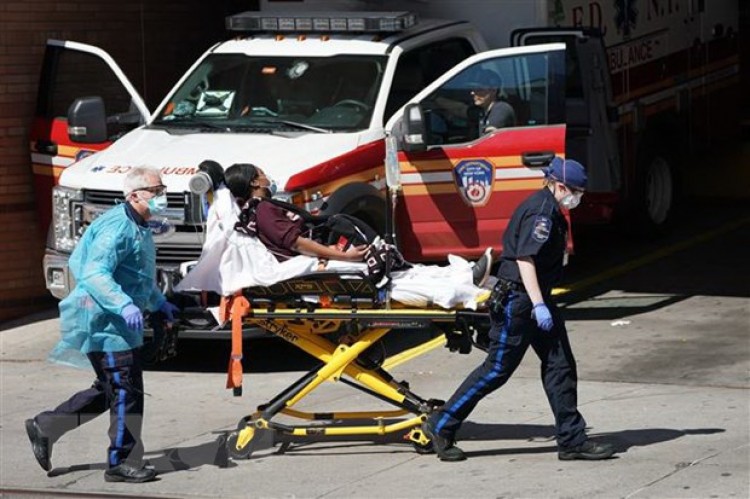 Nhân viên y tế chuyển bệnh nhân mắc COVID-19 từ xe cứu thương vào một bệnh viện ở New York, Mỹ ngày 6-4-2020. (Nguồn: AFP/TTXVN)