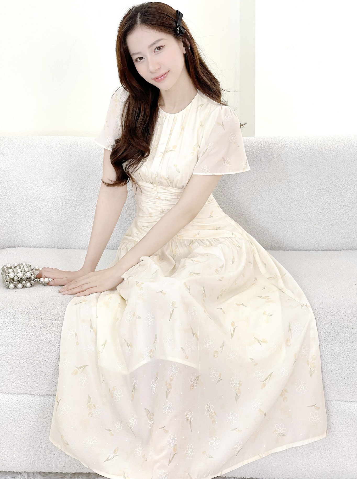 Thanh lịch và đoan trang trong từng đường nét, một chiếc váy hoa dịu dàng đủ để nàng tỏa sáng theo cách nhẹ nhàng và cuốn hút. Sắc vàng kem dịu nhẹ kết hợp hoa dập nổi sang trọng tạo nên một tổng thanh nhã. ẢNH: BEM DESIGN