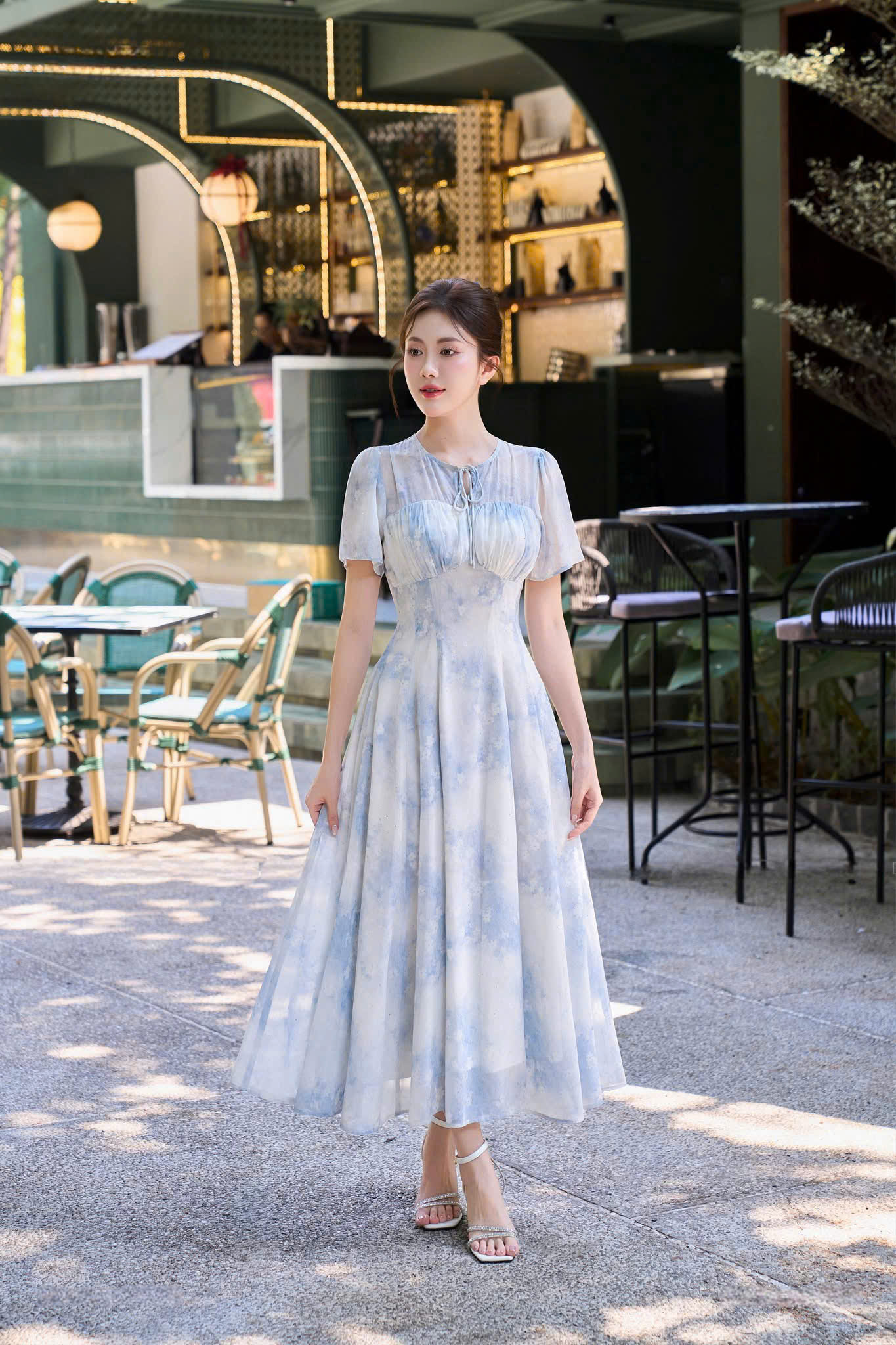 Dịu dàng, nền nã mà vẫn đủ nổi bật để nàng tự tin khoe sắc. Thiết kế hoa nhí trên nền vải lụa, gam màu trang nhã cùng phom đầm xòe dễ mặc với tính ứng dụng cao, mang lại cho nàng diện mạo xinh đẹp và chỉn chu nhất. ẢNH: BEM DESIGN