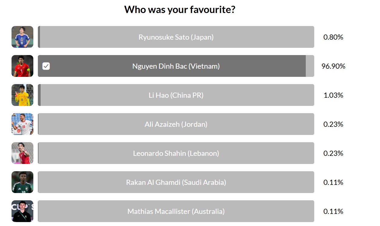 Đình Bắc áp đảo cuộc bình chọn - Ảnh: AFC