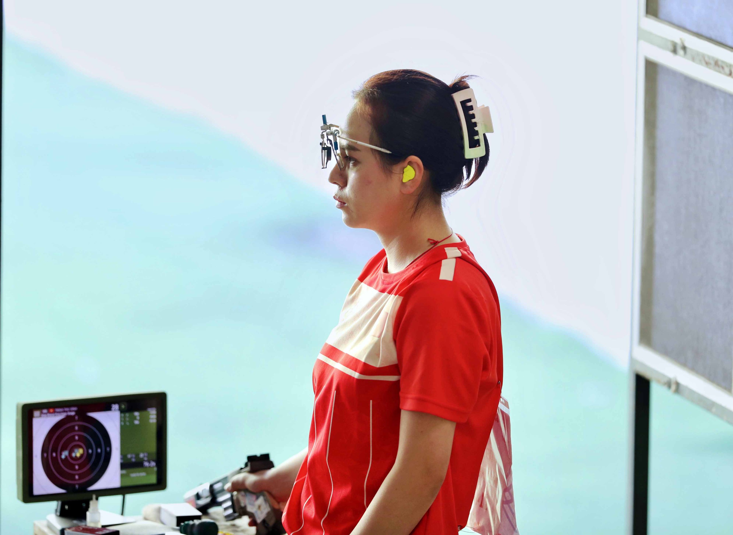 Xạ thủ Trịnh Thu Vinh tại SEA Games 33 - Ảnh: N.K.