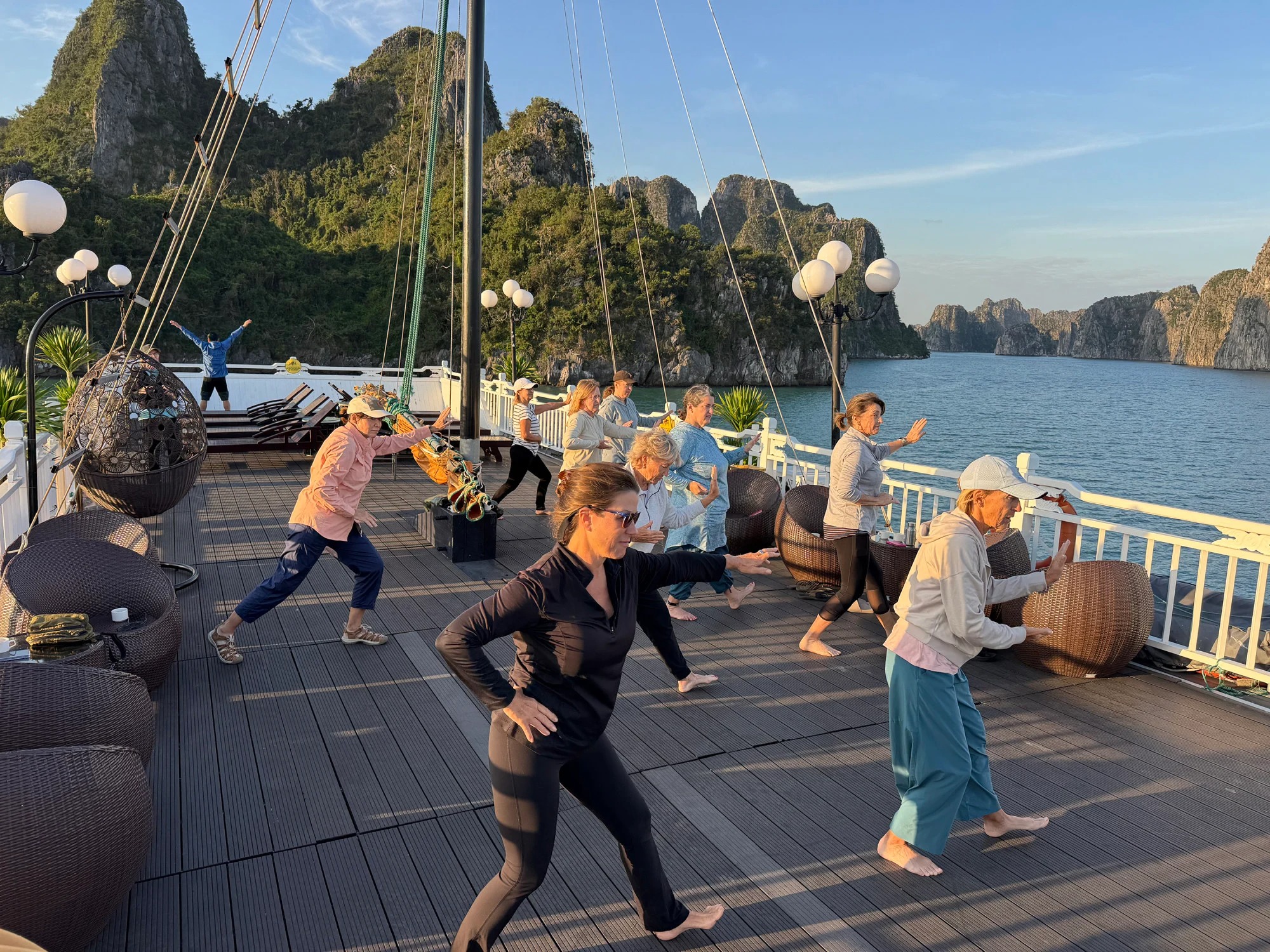 Một vài phụ nữ trong nhóm là bạn bè ở quê nhà nhưng hầu hết chưa từng gặp nhau nên bắt đầu làm quen. Mỗi ngày mở ra bằng bài tập thái cực quyền buổi sáng trên boong tàu. Kết thúc bằng hoạt động câu mực nhỏ gần đuôi tàu, dưới bầu trời đầy sao.