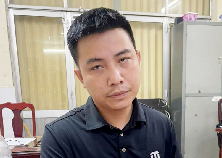 Đối tượng Ngũ Trọng Hiền đến cơ quan công an đầu thú.