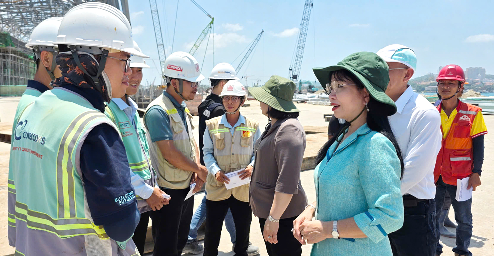 Đồng chí Trần Thị Thanh Hương động viên kỹ sư, công nhân nỗ lực thi công công trình phục vụ Hội nghị cấp cao APEC 2027.
