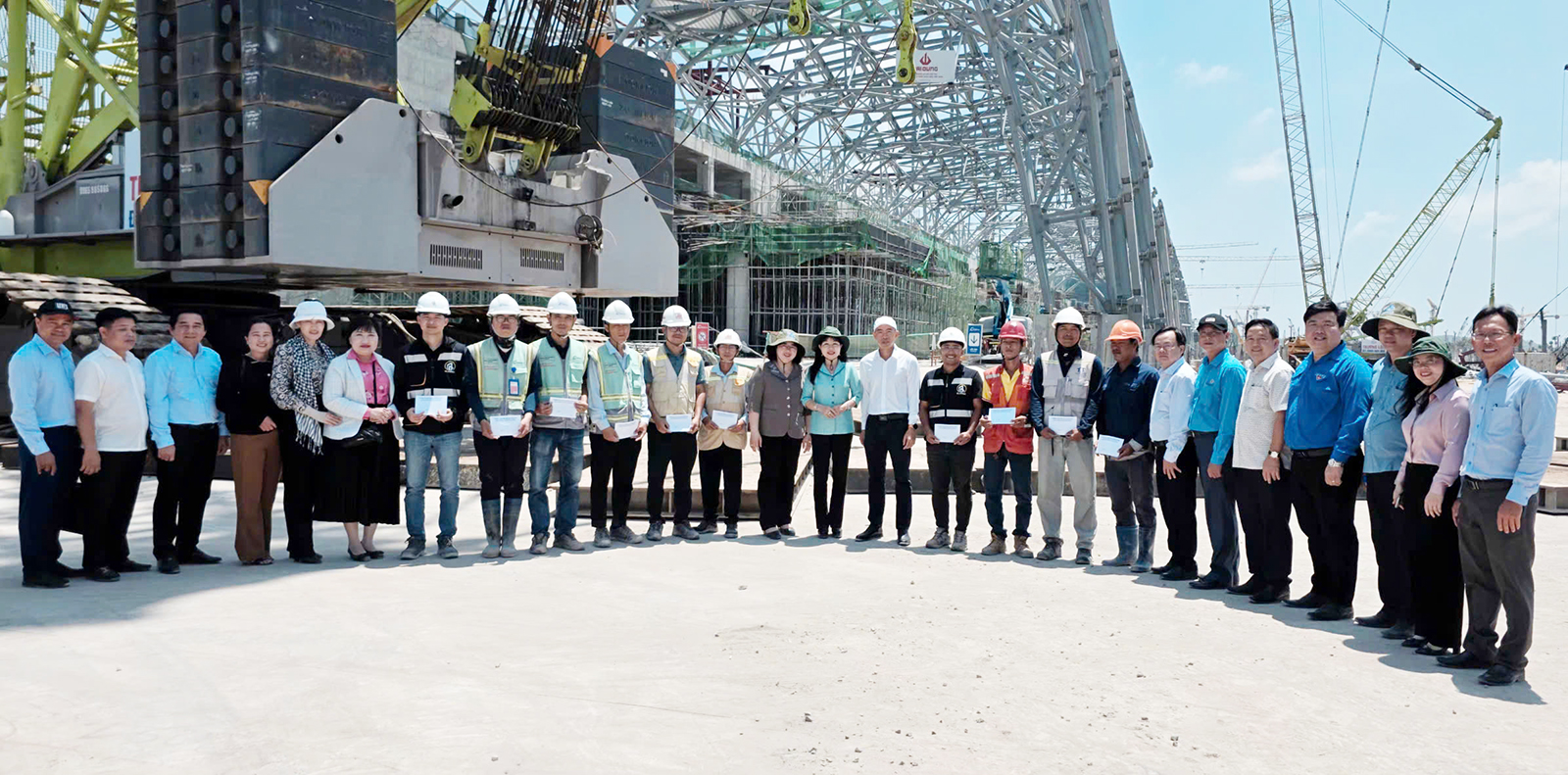 Đoàn công tác tặng quà cho kỹ sư, công nhân thi công công trình trọng điểm phục vụ Hội nghị cấp cao APEC 2027.