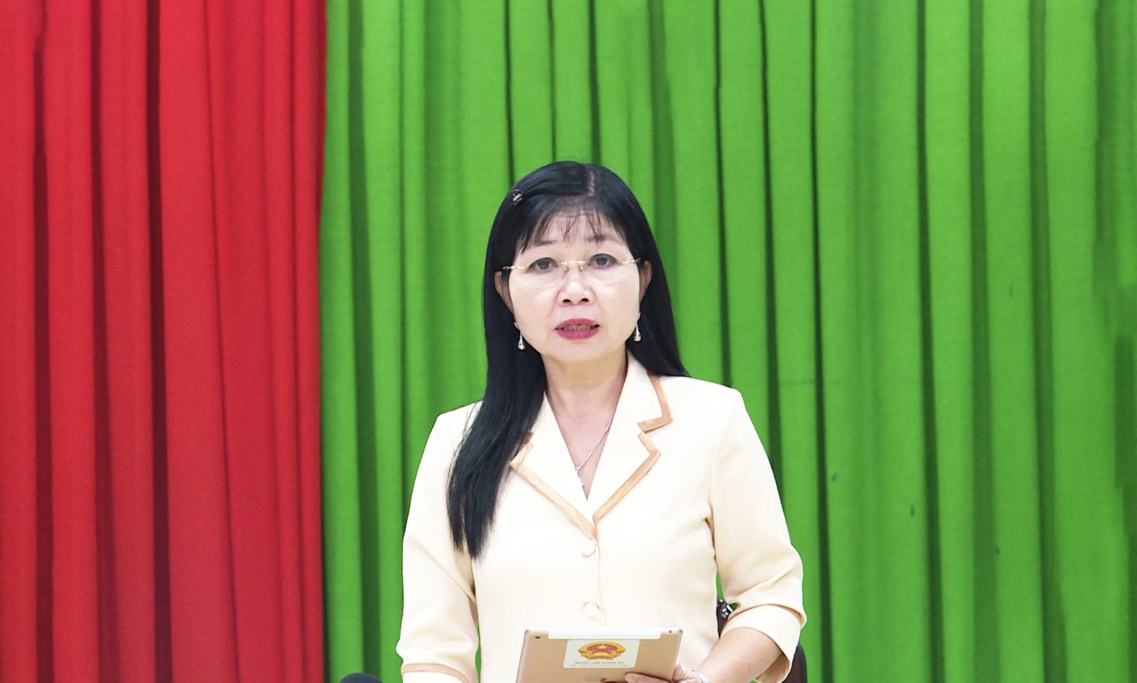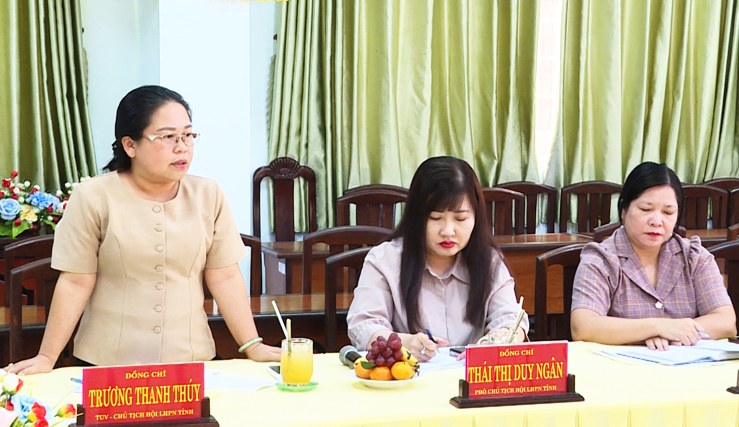 Chủ tịch Hội Liên hiệp Phụ nữ tỉnh An Giang Trương Thanh Thúy báo cáo tình hình hoạt động của Hội tại buổi làm việc.
