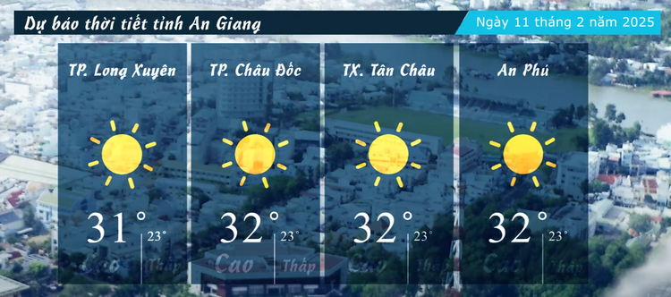 - Dự báo thời tiết tỉnh An Giang ngày 11/2/2025
