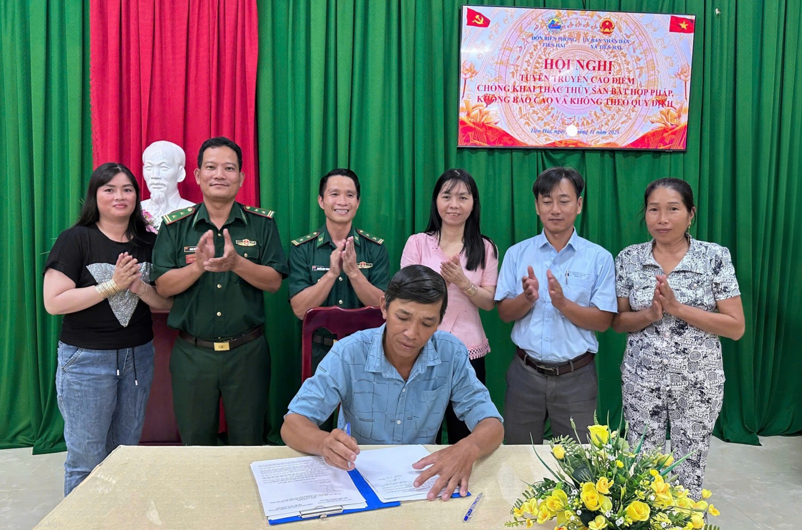 Qua đó, vận động ngư dân ký cam kết thực hiện nghiêm quy định và tích cực tham gia đấu tranh phòng, chống khai thác IUU.