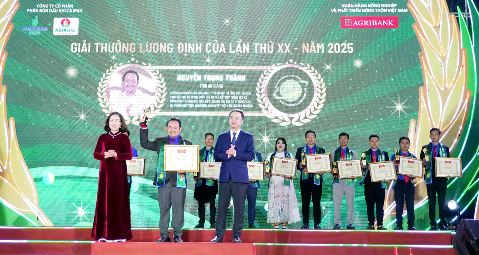 Nguyễn Trung Thành đã hoàn thành đề tài nghiên cứu khoa học cấp cơ sở: “Thử nghiệm mô hình nuôi và khai thác mật ong dú (Meliponini ) trong vườn cây ăn trái kết hợp trồng xen kẽ một số cây thảo dược tại vùng núi Tịnh Biên (tỉnh An Giang)”. Thành còn đạt giải nhất Cuộc thi Ý tưởng sáng tạo khởi nghiệp tỉnh An Giang lần IX năm 2025, do Tỉnh đoàn An Giang tổ chức.