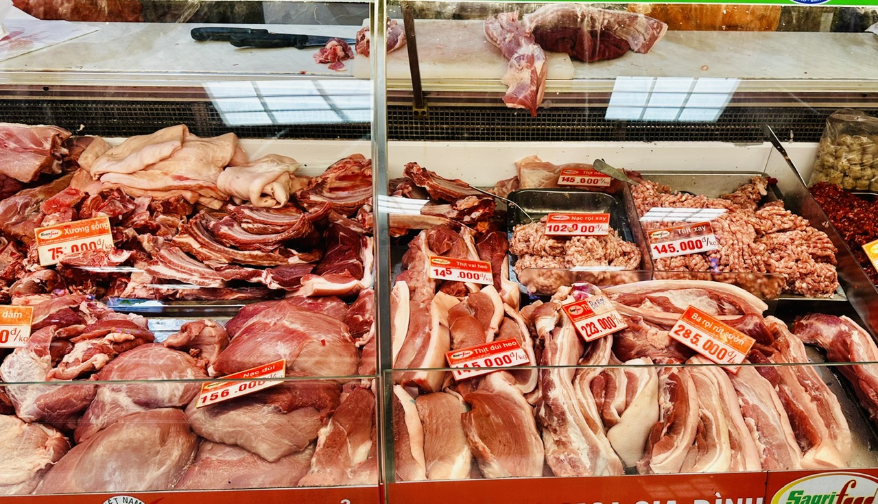 Giá thịt bán lẻ tại các chợ và siêu thị TP.HCM phổ biến giảm nhẹ như: ba rọi 165.000 đồng/kg, sườn non 178.000 đồng/kg, nạc dăm 155.000 đồng/kg, nạc vai 130.000 đồng/kg, nạc đùi 125.000 đồng/kg, thịt xay 128.000 đồng, mỡ heo 73.000 đồng/kg.