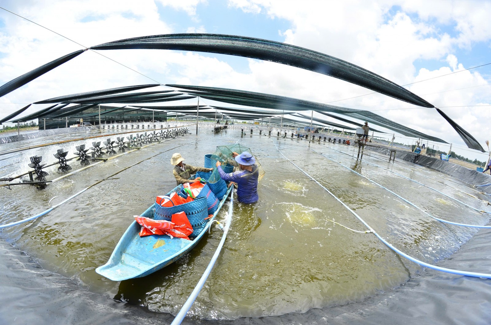 Trong điều kiện thiếu nhân công, nhiều hộ buộc phải thay đổi phương thức sản xuất. Một số nơi tăng cường cơ giới hóa, thuê dịch vụ phun thuốc, xử lý ao nuôi để giảm phụ thuộc vào lao động thủ công. “Trước kia làm gì cũng dùng sức người. Giờ thiếu lao động, nên phải chế máy tạt men, vi sinh, có vậy mới làm nổi”, ông Tú cho hay.