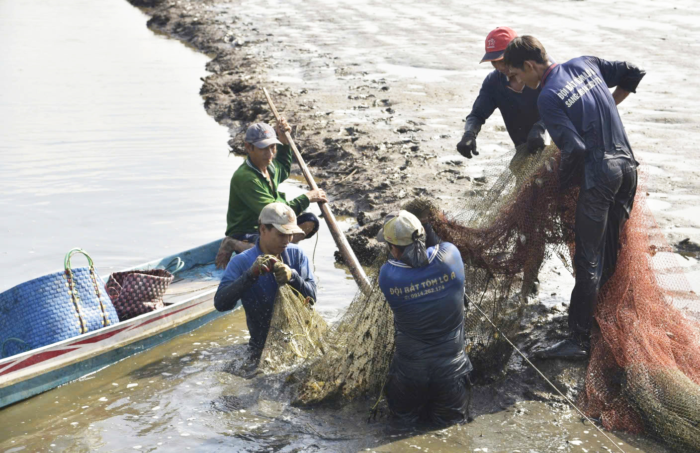 Công đoạn thu hoạch tôm càng xanh ở vùng U Minh Thượng cần nhiều lao động để đảm bảo tôm không bị ngộp, bán được giá cao.