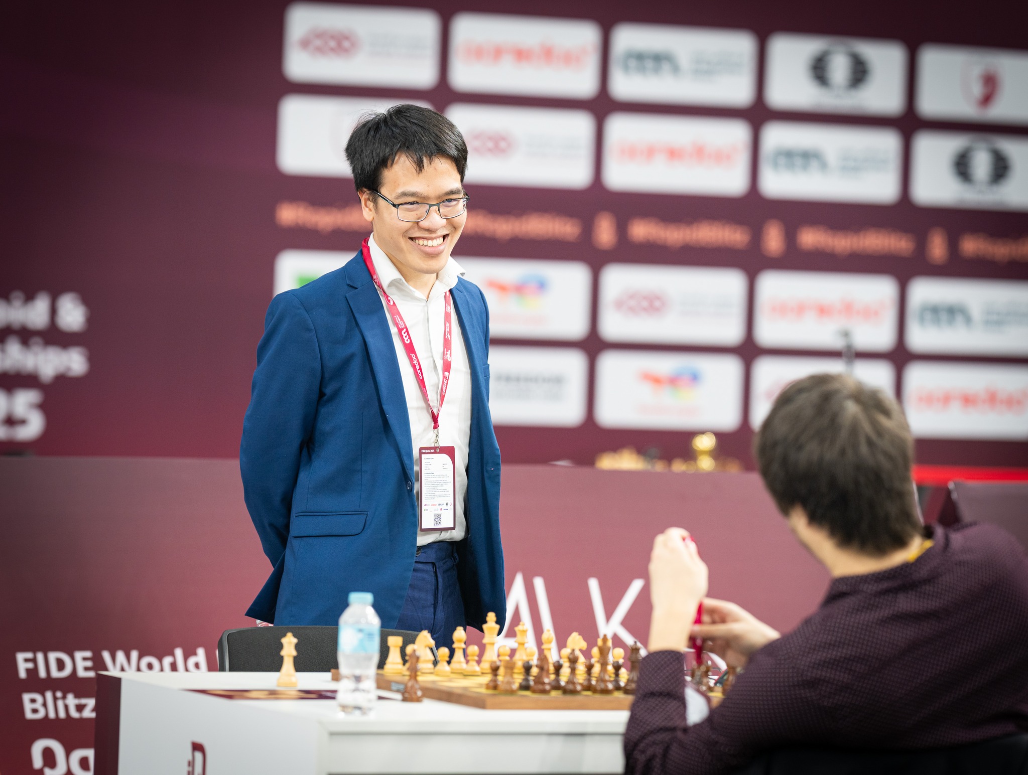 Kỳ thủ Lê Quang Liêm (đứng) vẫn là đầu tàu của cờ vua Việt Nam - Ảnh: FIDE